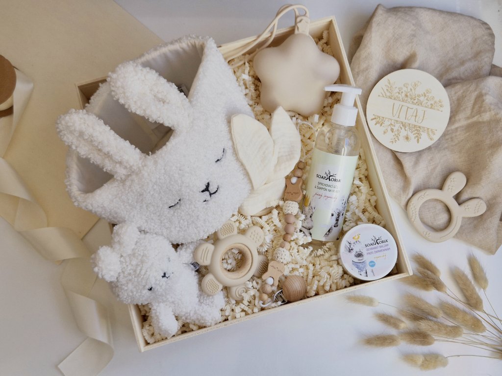 Každý detail v boxe bol vybraný s dôrazom na jemnosť, aby potešil nielen bábätko, ale aj rodičov.