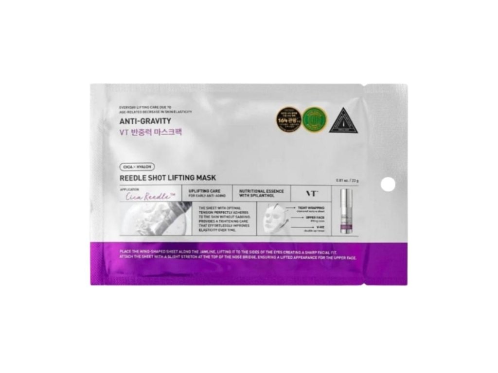 VT Cosmetics Reedle Shot Lifting Mask je liftingová maska, ktorá spája mikroihličkovú technológiu CicaReedle™ s intenzívne vyživujúcou esenciou pre maximálny účinok. Jemné mikroihličky z oxidu kremičitého zabezpečujú, že aktívne látky prenikajú hlbšie do pokožky, kde môžu pôsobiť intenzívnejšie. Výsledkom je viditeľne pevnejšia, pružnejšia a rozjasnená pleť už po prvom použití.